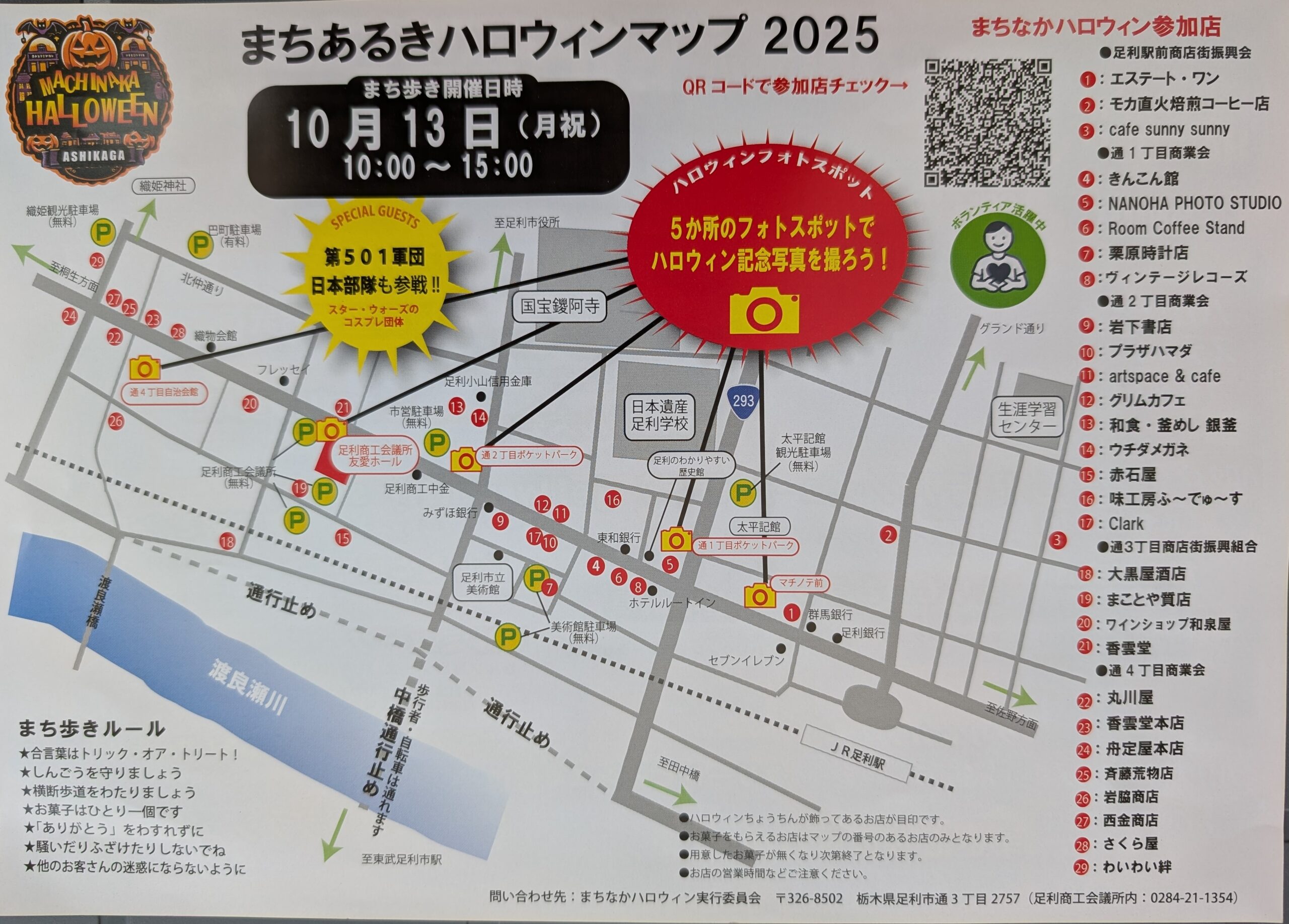 まちなかハロウィン 2025.10.11 Saturday 10月13日は、まちなかハロウィンが開催されます。当店は商工会議所のグルメコーナーに出店致します。たかうじ君焼、ポテト焼きそばを販売致します。普段店では販売していない、たかうじ君カステラも用意致しますので、是非お越しください。 なお、翌日の14日は、振り替え休業日とさせていただきますので宜しくお願い致します。 Tweet « next prev »